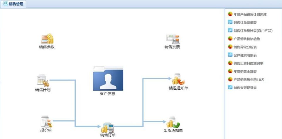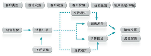 銷售管理系統(tǒng)模塊主要用來處理企業(yè)的銷售活動相關的業(yè)務,系統(tǒng)提供了從銷售報價、銷售訂單、發(fā)貨通知、銷售發(fā)貨到銷售退貨等完整的銷售管理功能。通過銷售系統(tǒng)與其他系統(tǒng)模塊的結合使用,您還可以動態(tài)掌握每一客戶的發(fā)貨、結算及拖欠款情況,從而幫助企業(yè)及時調(diào)整生產(chǎn)計劃、銷售計劃、采購計劃,加快資金的回籠,此外,還可以制定年度計劃。月度計劃、業(yè)務員銷售計劃等等,并可以跟蹤銷售業(yè)務員發(fā)貨、銷售及回款情況,從而全面考核業(yè)務員的銷售業(yè)績,銷售指標完成情況,協(xié)助企業(yè)制定銷售考核目標,擴大銷售成果。