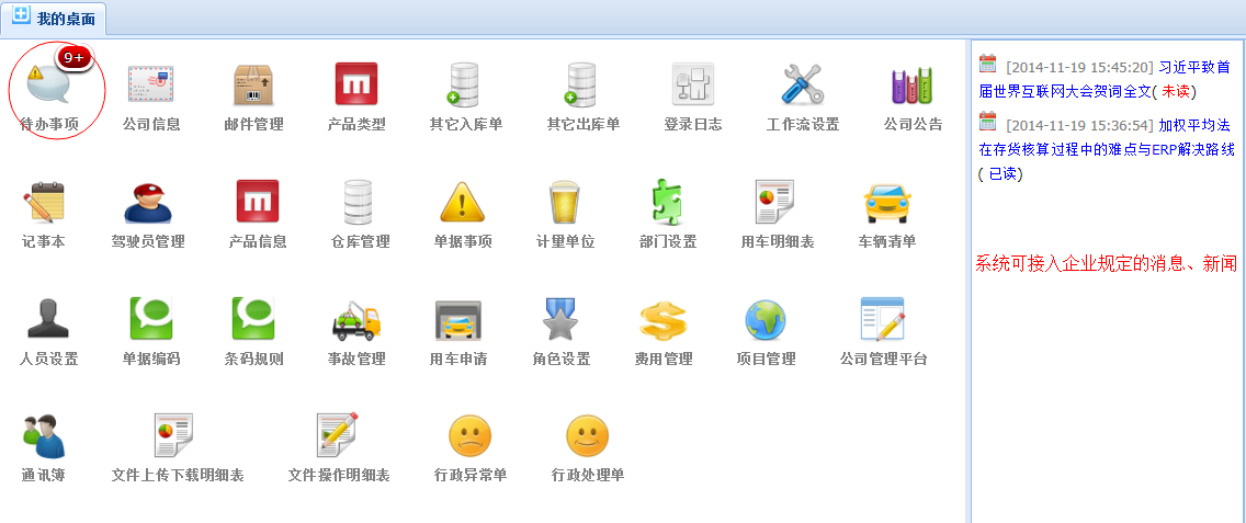 3、桌面有員工自定義,待辦事宜及時提醒,在未處理時間外,自動系統報工到相關部門或領導處理。