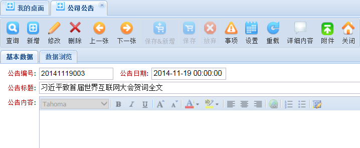5、設置公司公告,系統自動現在在用戶首頁,提升企業文化建設與信息化交流平臺等。
