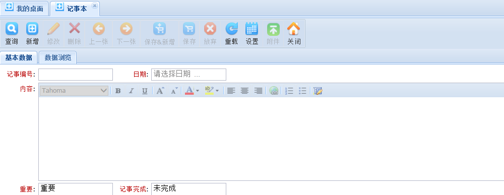 6、增加記事本功能,員工在多長時間都能找到想找的事件、問題等。可作為便簽使用。