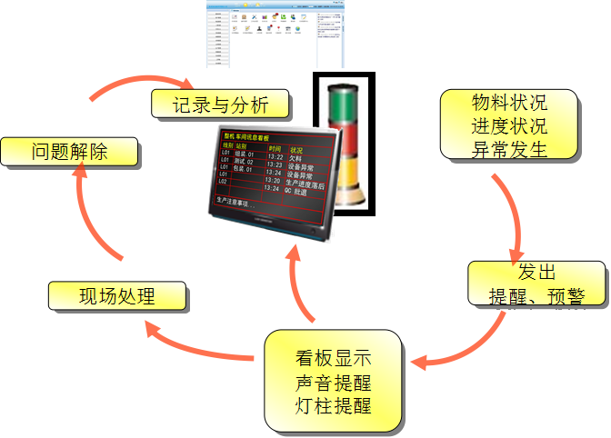 本系統可結合聲、光、電等形式展現。結合LED屏、液晶屏等各類電子管理板,并利用形象直觀,色彩適宜的各種視覺感知信息(表格、圖形、數據、顏色)來組織、管理和改善現場生產活動,同時可以一目了然地發現異常狀態及問題點的管理方式的一種管理工具。