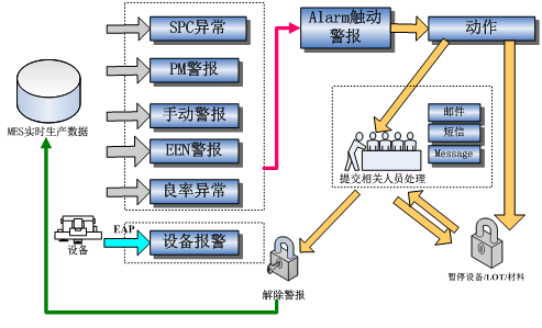 u 警報可由CIM系統各模塊引發.主要是設備警告和EDC/SPC警告