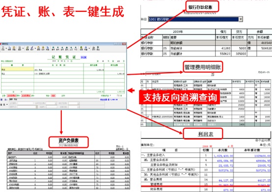 在這里,當我們填制憑證的時候,系統自動為你出明細賬,總賬,和報表。當您對總賬中的數據有疑問時,還很以很方便地查到相關原始憑證,成倍地提高您的工作效率。