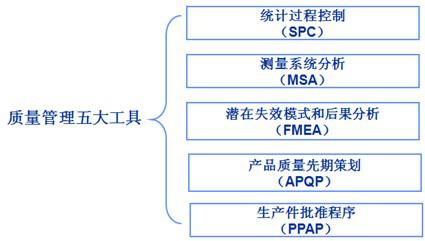 | 質量是企業的生命,是一個企業整體素質的展示,也是一個企業綜合實力的體現。伴隨人類社會的進步和人們生活水平的提高,顧客對產品質量要求越來越高。因 此,企業要想長期穩定發展,必須圍繞質量這個核心開展生產,加強產品質量管理,借以生產出高品質的產品,讓企業領導放心,讓我們的客戶稱心!下面我們主要針對質量管理中核心的五大工具進行介紹。 | |