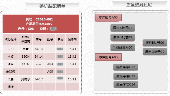 可追溯的范圍:總成產品能追溯產品的裝配日期、人員、檢驗人員;甚至要記錄出廠時的實驗性能數據;