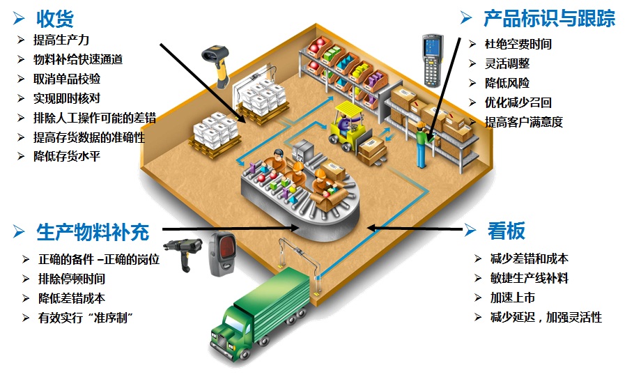 3) 數據采集:生產和倉庫現場的數據采集大多數可由手工錄入變為掃描,實現快速準確采集數據,并能實時傳遞和展示數據;