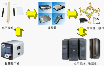 基本的RFID應用系統由三部分組成:標簽(Tag):由耦合元件及芯片組成,每個標簽具有唯一的電子編碼,附著在物體上標識目標對象;讀寫器(Reader):讀取(有時還可以寫入)標簽信息的設備,可設計為手持式或固定式;中間件(MiddleWare):扮演RFID標簽和應用系統之間的中介角色,是應用系統和讀寫器間數據流入和數據流出的軟件。基本的RFID應用系統組成,如圖: