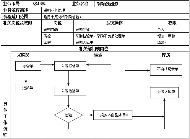 1、 采購員在【采購管理】中填制采購到貨單推式生成采購報檢單。 2、 檢驗崗位在【質量管理】中由采購報檢單參照生成采購檢驗單對存貨進行檢驗。 3、 庫房在【庫存管理】中由采購檢驗單對合格品和降級品進行入庫,參照生成采購入庫單。 4、 檢驗崗位在【質量管理】中對不良品進行處理,由采購檢驗單參照生成不良品處理單。對于進行抽檢檢驗不合格存的貨進行分揀,由不良品處理單參照生成采購報檢單。 5、 在【采購管理】中采購到貨單根據采購檢驗單、采購不良品處理單反寫合格數量、不合格數量,參照采購到貨單生成退貨單。 |