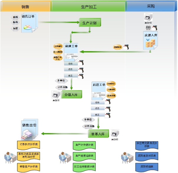 杭州涵湛《皮革行業ERP》管理系統是涵湛軟件公司自主研發的產品,通過百家企業的驗證、完善逐步形成的行業化產品。主要從訂單要求、生產計劃、皮源入庫、調皮選料、派工生產、化料配方、工序管理與報工、計件分攤、量革入庫、打碼銷售等重點業務入手。