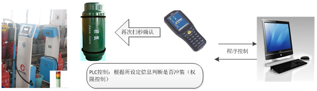 3、氣瓶的流通過程中,通過讀取電子標簽記載的產權信息,保證定點充裝;根據電子標簽記載的檢驗和制造信息,保證定期檢驗和到期報廢。