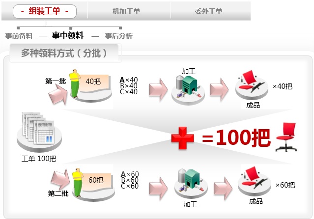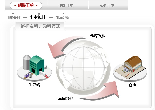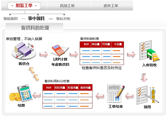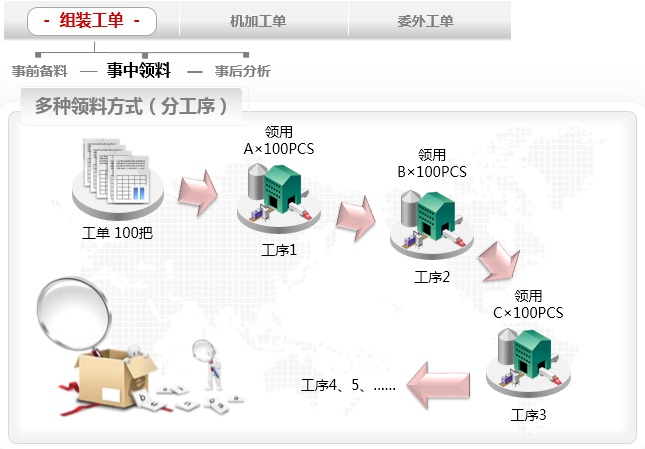 ---原料倉-材料調撥-生產線-產品入庫-自動扣料