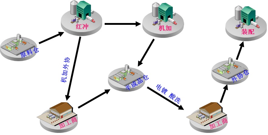 電鍍、酸洗、機加等工藝的外協發料、外協回收及外協結算;