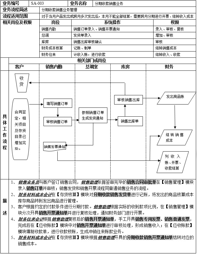 2對(duì)于一次開(kāi)票,分期收款的業(yè)務(wù)不適用本范圍,而應(yīng)當(dāng)采用普通銷(xiāo)售流程。