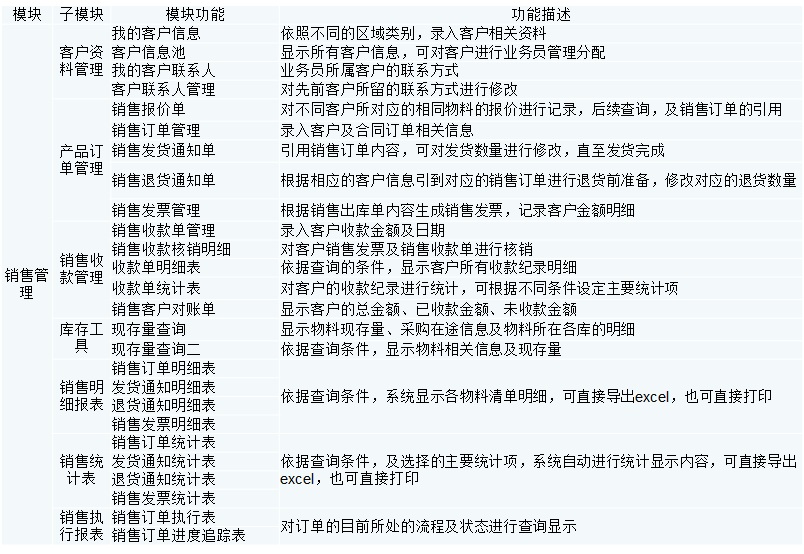 銷售管理模塊主要實現對銷售全過程進行控制和跟蹤,具備完善的企業相關銷售信息的管理功能。整個銷售業務處理,包括了銷售價格的制定、訂單、發票、收款。包含了向客戶的實物轉移、票據交換、款項的收取過程,并且在企業中涉及多個崗位:銷售業務員、庫房管理員、財務人員。