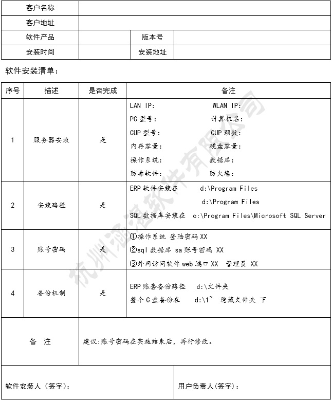 ERP軟件安裝確認書