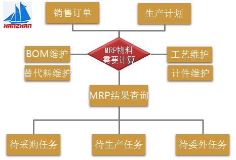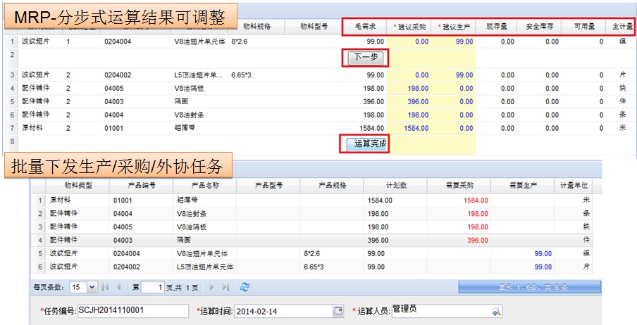 3、通過設定BOM數據、MRP參數,展開MRP運算,自動產生合理生產、委外、采購計劃;查看MRP運算過程,結合實際情況調整計劃。;