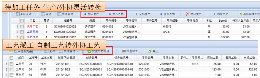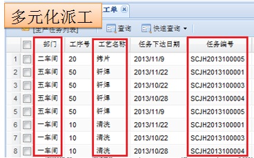 6、多元化派工方式-系統提供按部門派工、按工段派工、按設備派工、按任務號派工