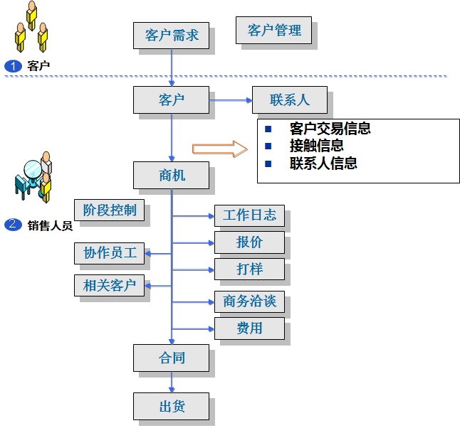 3、銷售人員對商機進行跟進,根據客戶要求進行報價、打樣、商務洽談,從而取得某個部件的供應合同